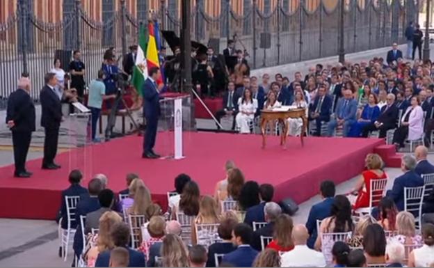 Andaluces y andaluzas. Tengo el gran honor de renovar mi compromiso con el pueblo andaluz. Acepto la dignidad de ser Presidente de la Junta de Andalucía como un compromiso de lealtad y honestidad con todos y cada uno de los ciudadanos de este país, y lo hago en cumplimiento del mandato de los andaluces y con la certeza de que juntos llegaremos más lejos.