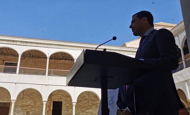 Juanma Moreno, durante su intervención en el Convento de la Trinidad. / Salvador Salas