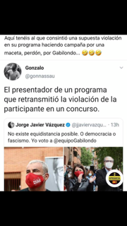 "El presentador de un programa que retransmite la lesión de un concursante", palabras que tituló un tuit del presentador de Telecinco en el que participó con el PSOE. “No hay equidistancia posible. O democracia o fascismo. Yo voto por Gabilondo ”, dijo Vázquez poco después de asistir a un mitin.