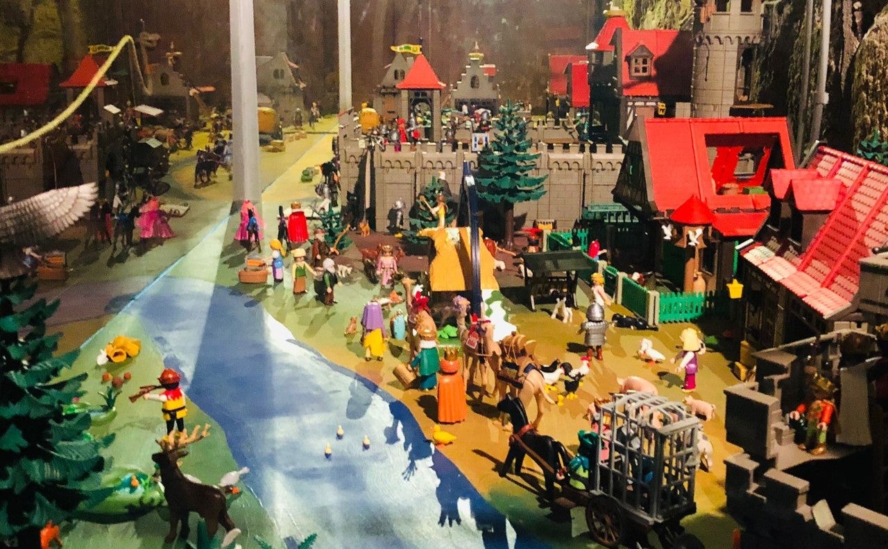 En este caso se trata de un belén compuesto por piezas de playmobil, unas 500, entre personajes, animales, dos castillos, fincas o más casas, donadas por un coleccionista moro, Chus Pascual.