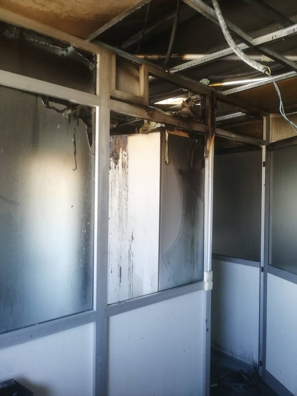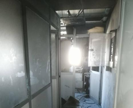 El comisionado de patrulla de turno fue el primero en actuar. Localización del incendio en el primer piso del edificio de la Hermandad donde se ubican las oficinas de la administración portuaria de Arguineguín.