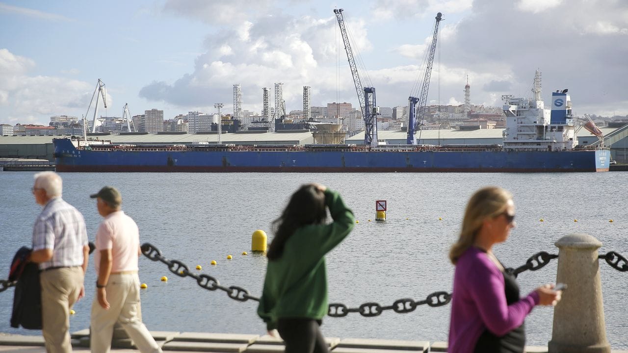 El carguero con más de 600 kilos de cocaína sale del puerto de A Corua