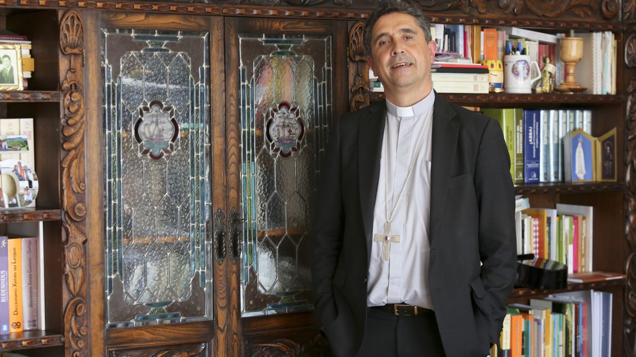 El obispo esquivando beneficios y parado detrás de una pancarta