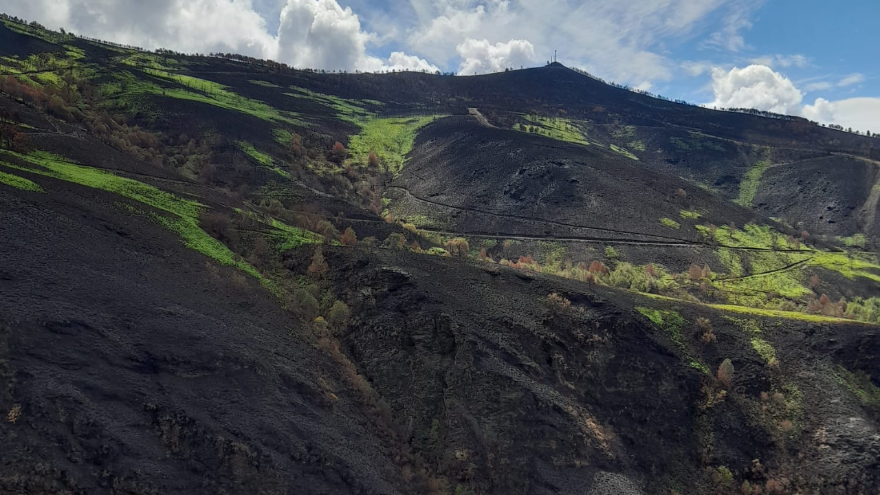 Primeros brotes verdes en las grandes zonas de incendios de Galicia hace dos meses