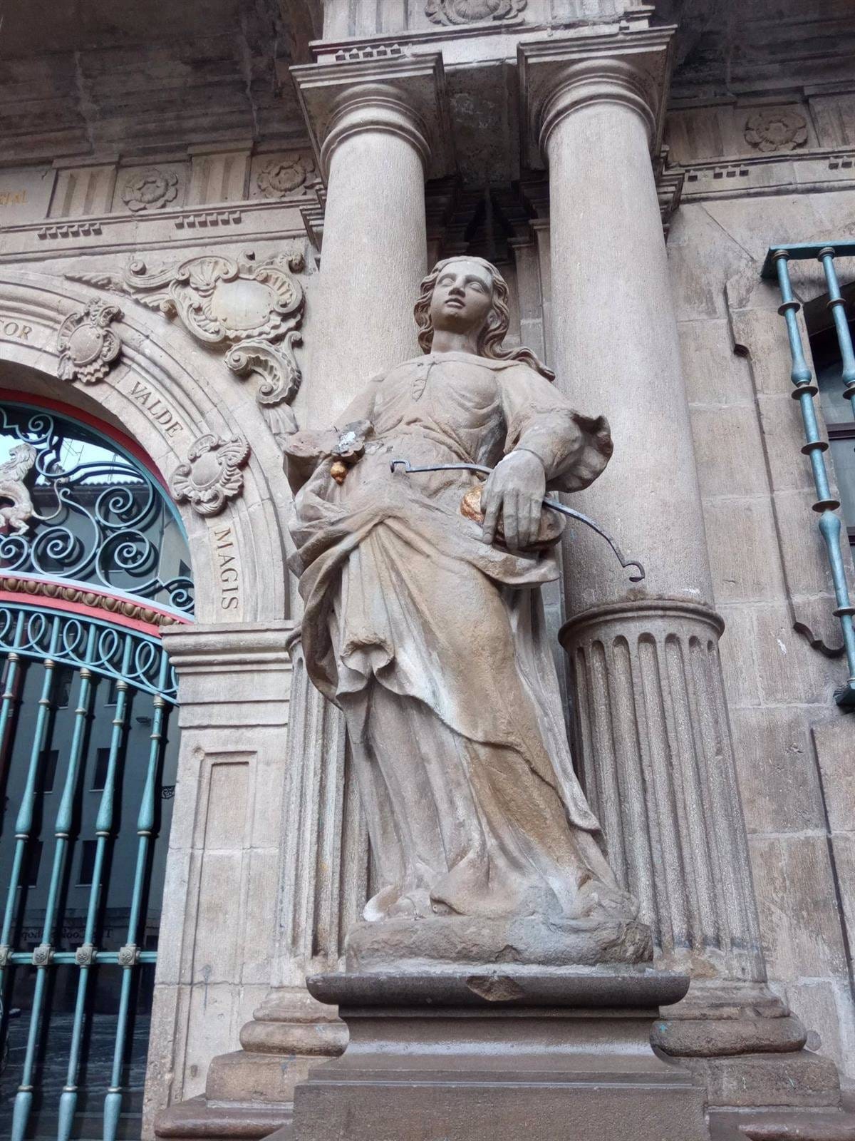 Rompen parte de la estatua del Juez del Ayuntamiento de Pamplona y le roban la espada